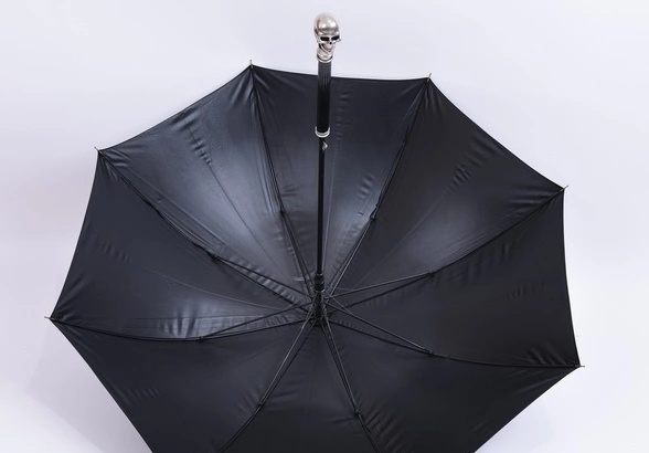 专业防晒布-雨伞布上印有隐约可见的骷髅骨架图案,黑色橡胶涂层的内表面可阻挡80%的可见光