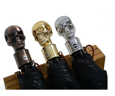 --PERSONALITY Umbrella Handle -Skull design (three-color optional, bronze,silver,golden) The umbrella belt also carries a small skull skeleton with the same color