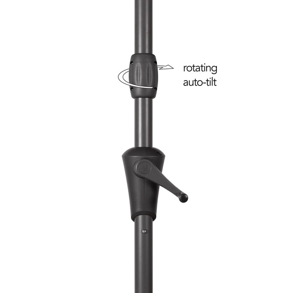 Easy to reach rotating-tilt mechanism blocks the sun at any angle